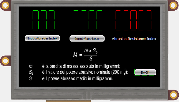 Abrasimetro per verificare la resistenza all’abrasione delle suole in gomma, pelle e similari utilizzati nell’industria calzaturiera. Il campione viene inserito all’interno di un supporto che verrà posizionato su un tamburo rotante, precedentemente rivestito con carta abrasiva standard. L’operatore prenderà nota del peso campione prima e dopo la prova, per verificare la perdita di peso e adottare tale parametro per calcolare la resistenza all’abrasione grazie ad una specifica formula, dettata dalla norma.
